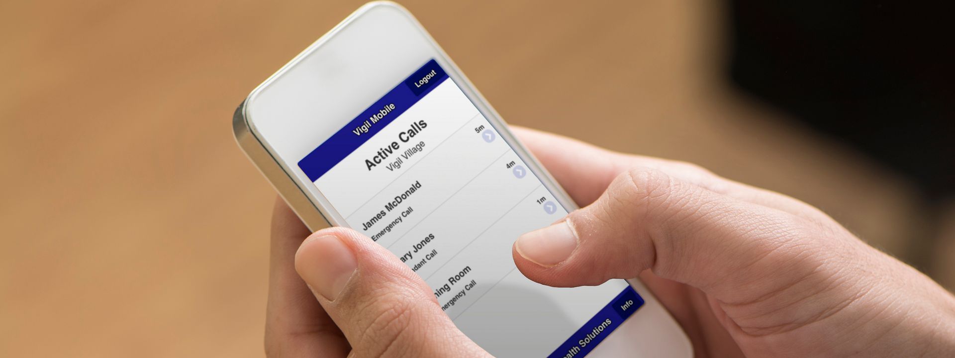 Vigil® Mobile is a smart phone application (app) that can be used on your Apple® iPhone or iTouch or Android® device. Vigil Mobile allows you to view active calls from your Vigil Integrated Care Management System, Vigil Elite or Vigil Essential System. Vigil Mobile provides access to instant, real-time information, facilitating immediate action where needed. Vigil Mobile may be used as a pager alternative for front line care staff or by senior staff and administrators that need a convenient way to monitor the Vigil System from their mobile device.
